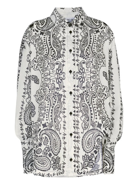 white paisley print collared neckline button fastening long sleeves relaxed fit