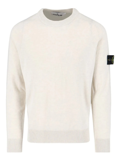 beige virgin wool crew neck long sleeves logo-patch to the sleeve