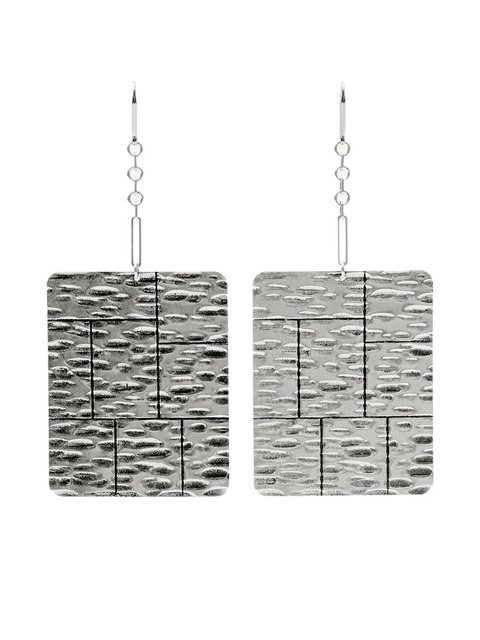black rectangular shape hammered-effect finish chain detailing hook fastening These earrings come as a pair.