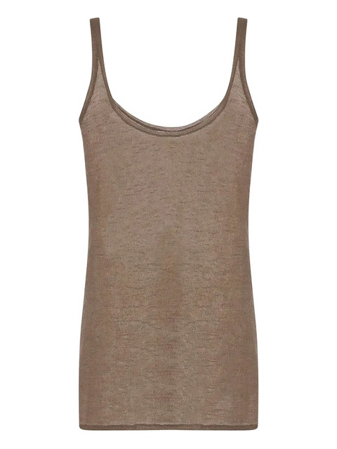 brown scoop neck curved hem sleeveless