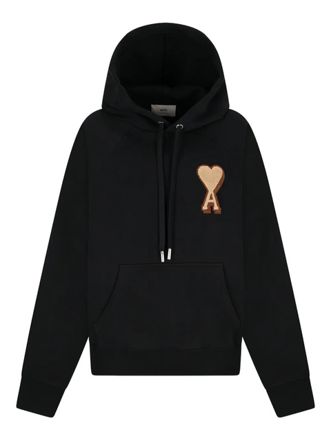 black drawstring hood kangaroo pocket Ami De Coeur patch embroidered detail long sleeves