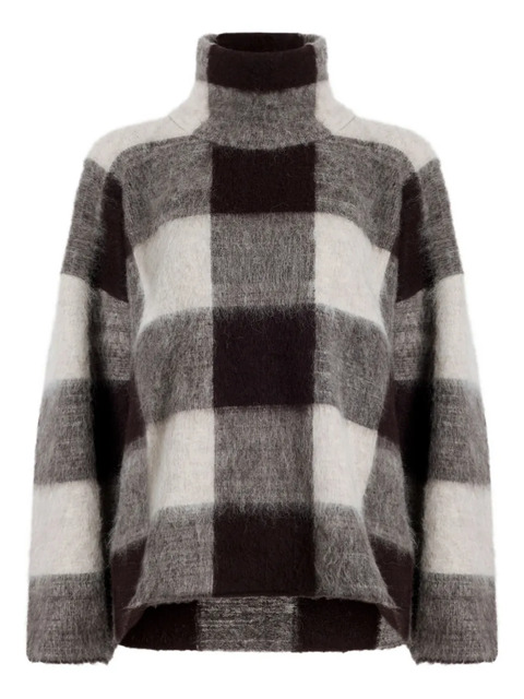 brown and off-white check pattern high neck long sleeves relaxed fit brushed effect