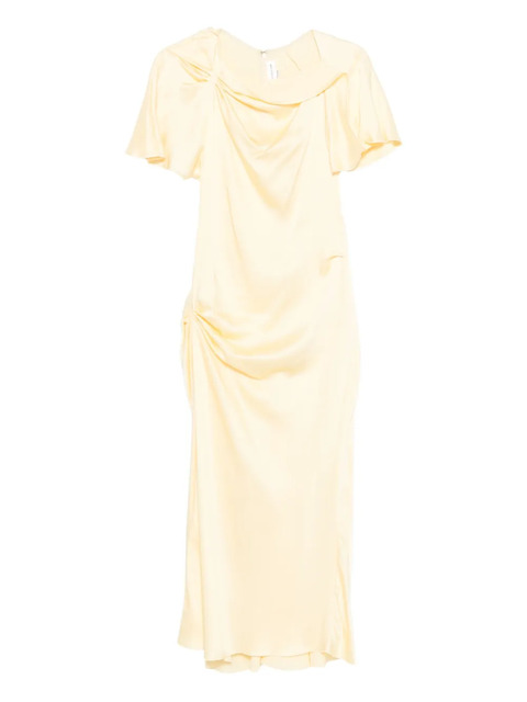 daffodil yellow cowl neck short sleeves draped detailing side ruching rear zip fastening