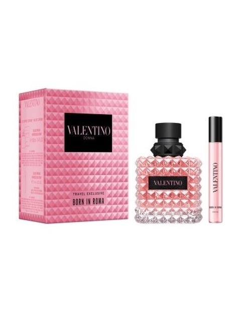 Launch year: 2019. Fragrance Family: Amber Floral. Top notes: Blackcurrant, Bergamot. Heart notes: Jasmine grandiflorum, Jasmine sambac, Jasmine tea. Base notes: Bourbon vanilla, Cashmeran, Guaiac wood. Design house: Valentino. Design house category: fashion. Design house country: Italy. Scent name: Donna Born In Roma. Gender: Ladies. Category: Fragrance. SubType: Gift Set. Barcode: 3660732673070. Eau de Parfum 100 ml + Eau de Parfum 10 ml. Valentino Ladies Donna Born In Roma Gift Set Fragrances 3660732673070. <br/><br/> This item is only valid for shipment in the Contiguous United States & Canada.
