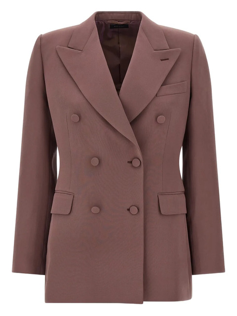 pink double-breasted fastening peak lapels flap pockets chest pocket long sleeves