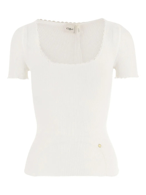 Chloe Chloé scoop-neck lace-trimmed T-shirt - 32002348 (LPN331106)