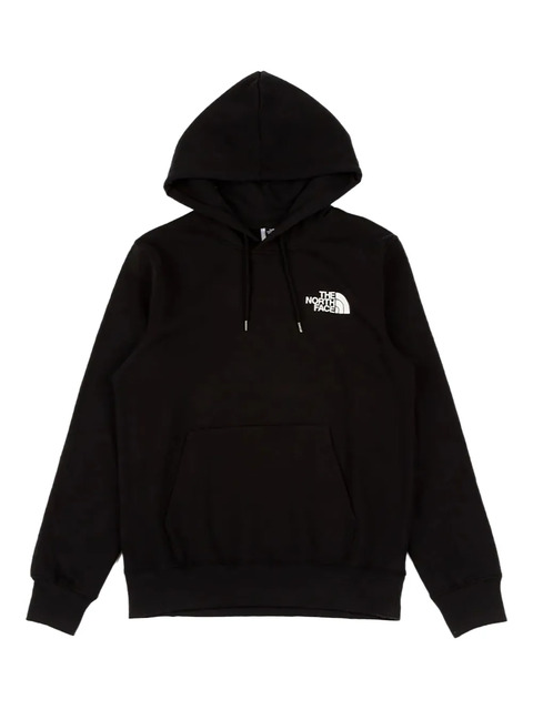 black drawstring hood kangaroo pocket small logo large back print long sleeves