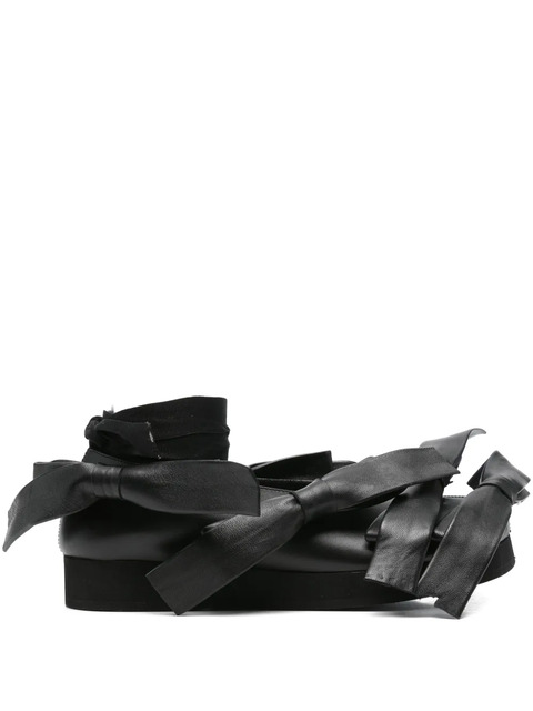 black leather upper multiple ribbon bows platform sole round toe ribbon ankle tie