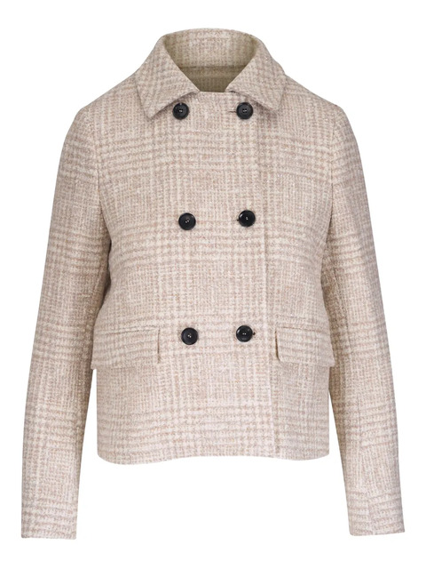 beige checked pattern double-breasted fastening flap pockets long sleeves