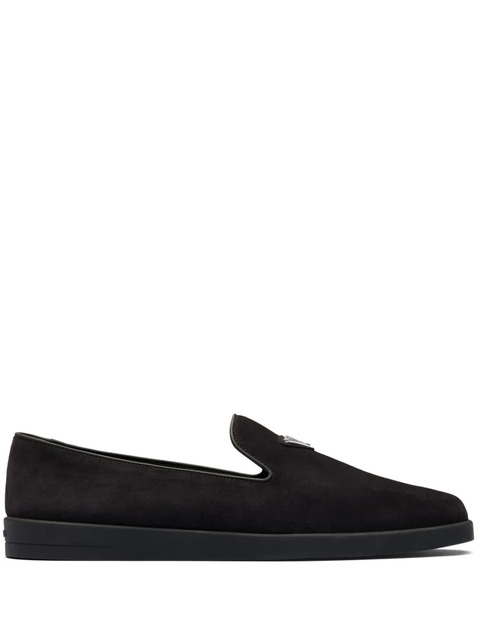 Prada logo-plaque suede loafers - 21293048 (LPN331523)