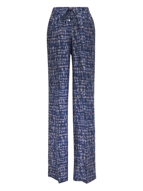 dark-blue abstract print drawstring waistband straight leg button fastening side pockets