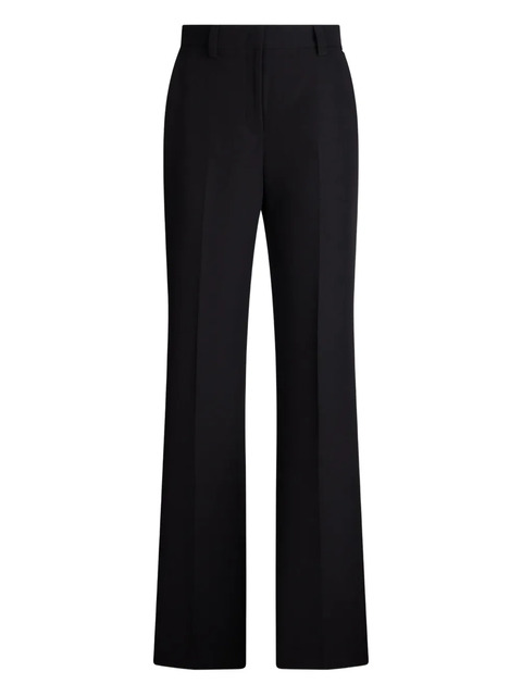 black palazzo silhouette high waist rear jetted pocket side slit pockets concealed zip closure