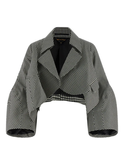 black gingham pattern notched lapels long sleeves cropped