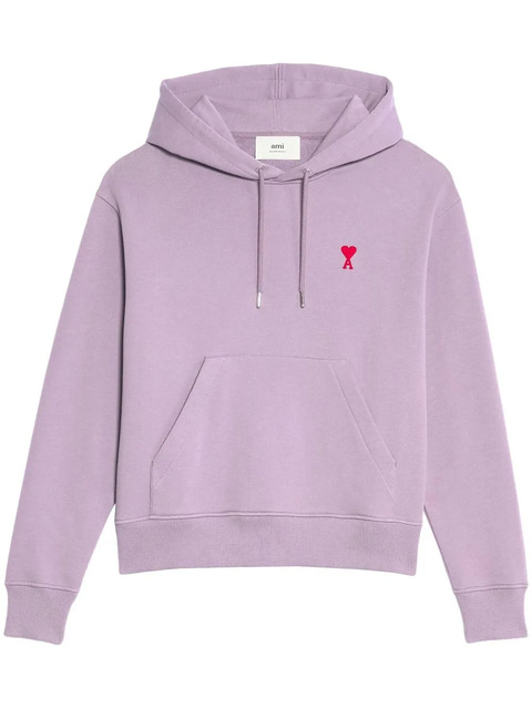 lavender purple organic cotton signature Ami de Coeur monogram motif drawstring hood long sleeves drop shoulder ribbed cuffs ribbed hem front pouch pocket straight hem Conscious: This item is made from at least 50% organic materials