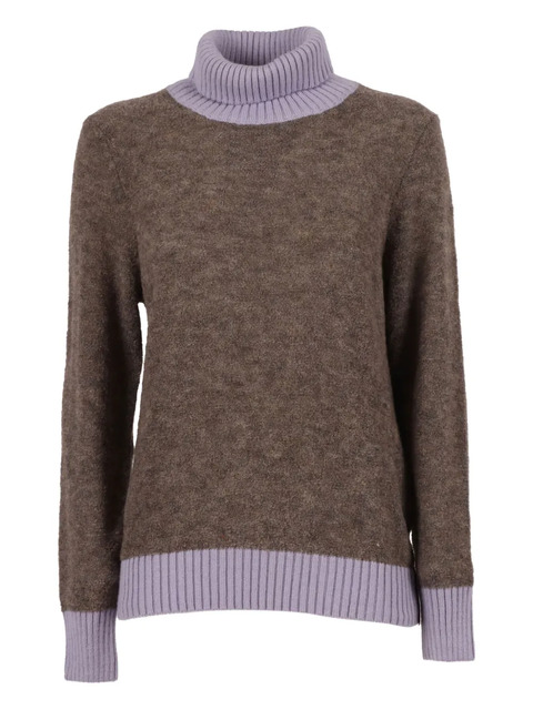 brown turtleneck ribbed hem, cuffs and neck long sleeve wool-blend