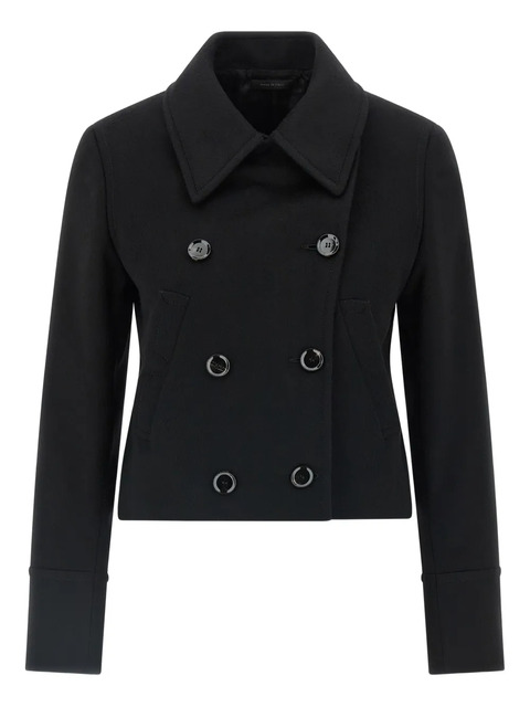 black double-breasted fastening notched lapels cuffed sleeves structured shoulders long sleeves