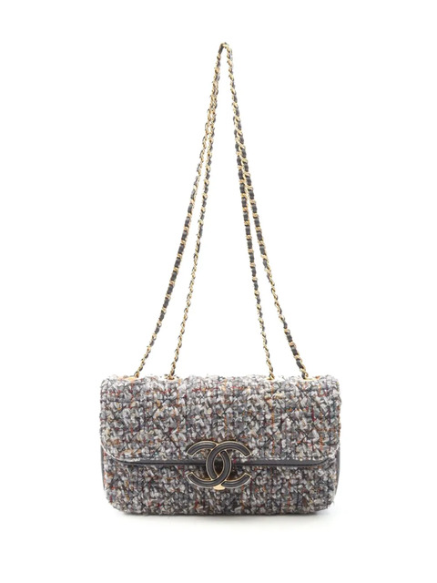 quilted tweed body leather woven chain straps double front flaps with a push lock closure two interior compartments interior zip and slip pockets gray Serial Number: 28197672 This item has no inclusions. Condition: EXCELLENT. This previously owned item is in near-perfect condition with no signs of damage or use. Due to the exclusivity of this item and its limited availability, processing and delivery might take longer than usual. Declared Damages: Interior Lining Feature(s) Moderate Scratches. Please refer to the photos on this product page for a detailed view of the item, including any damages declared.