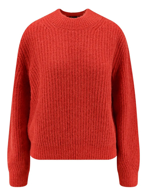 red high neck ribbed texture long sleeves relaxed fit boxy shape