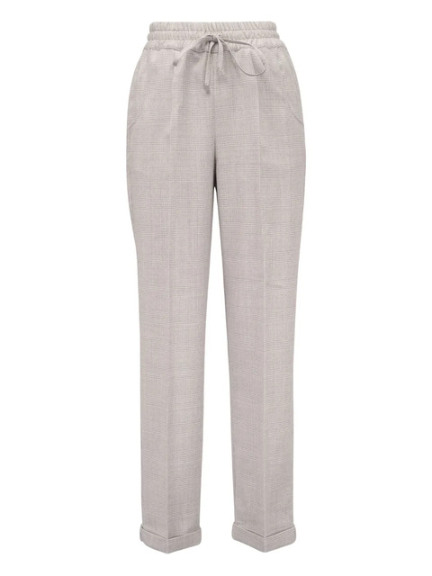 beige checked pattern drawstring waistband rear welt pockets cuffed hems straight leg