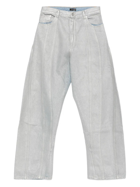 grey metallic sheen multiple panels seam detailing straight leg extra-long lenght