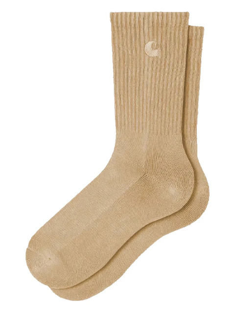light cognac ribbed texture embroidered logo crew socks Be sure before opening, as socks and hosiery can only be returned in their original, unopened packaging.