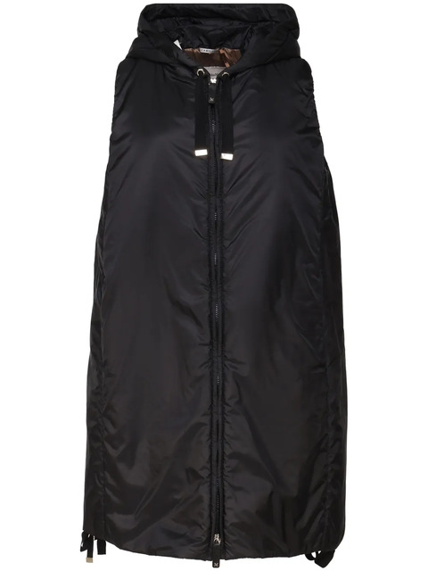 black water-repellent padded design front two-way zip fastening slouchy drawstring hood sleeveless two side welt pockets drawstring hem full lining