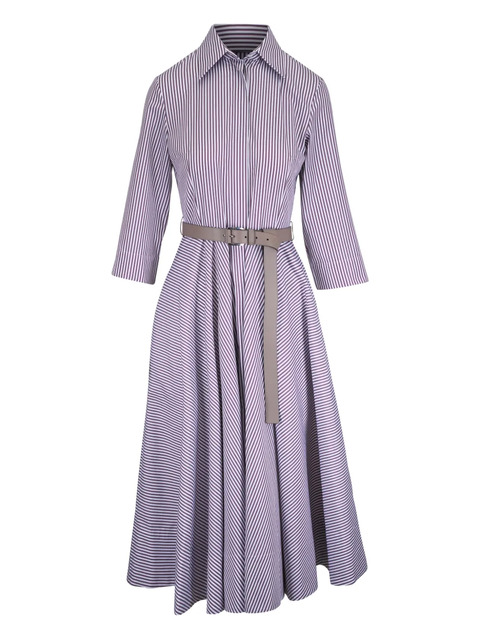 white purple stripes three-quarter sleeves collared neckline button fastening self-tie belt