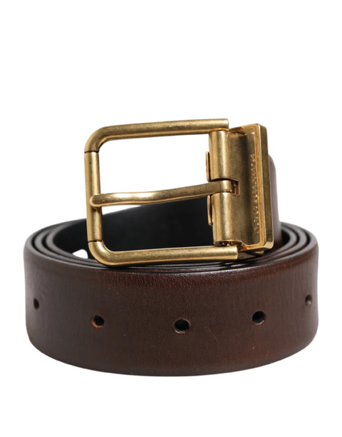 Dolce & Gabbana Brown Classic Gold Metal Logo Buckle Men Belt - 90 cm / 36 Inches - BEL9303-90 (LPN332449)