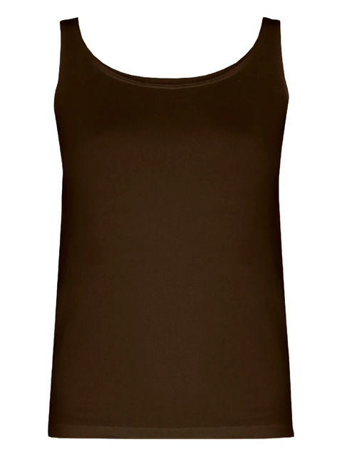 brown scoop neck sleeveless design straight hem