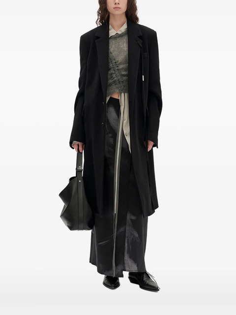 black wool cashmere blend single-breasted closure long sleeves tie detail