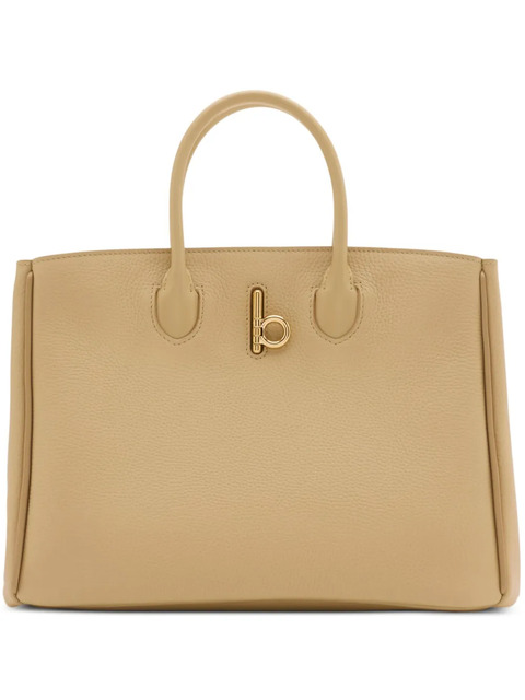 beige calf leather debossed logo to the rear 'b' clasp adjustable detachable shoulder strap two rolled top handles suede lining main compartment