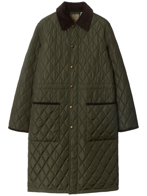 olive green diamond quilting front press-stud fastening corduroy collar long sleeves drawstring waist two front patch pockets checked lining