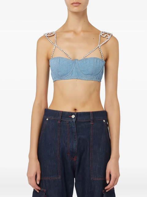 blue balconette style underwire cup jewel straps straps rear hook and eye fastening