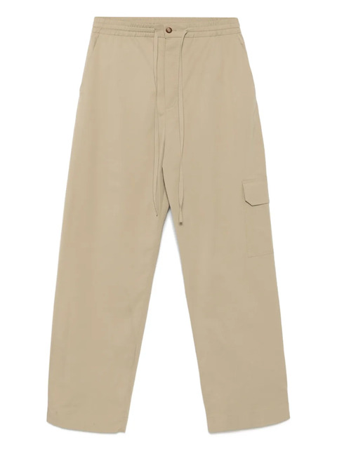 beige drawstring elasticated waistband side cargo pocket side slit pockets rear welt pockets