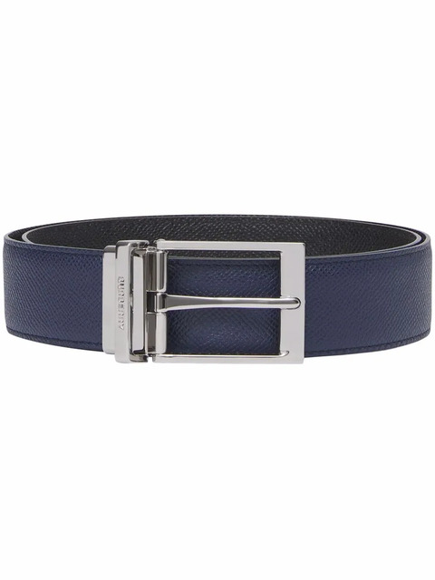 navy blue/black calf leather grained texture reversible silver-tone buckle fastening adjustable fit