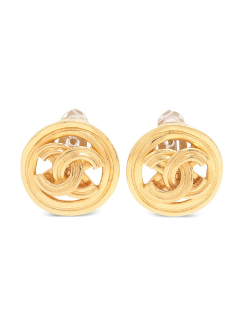 1996 gold-tone round stud design embossed detailing Interlocking CC logo detail clip-on fastening These earrings come as a pair. Normal everyday use and external agents may reduce the lustre of gemstones and gold surfaces. To maintain, use specific, non-abrasive products specially meant for cleaning jewellery. Condition: GOOD. This previously owned and used item is in good condition with minimal signs of use. This may include fading of material or plating and scratches.