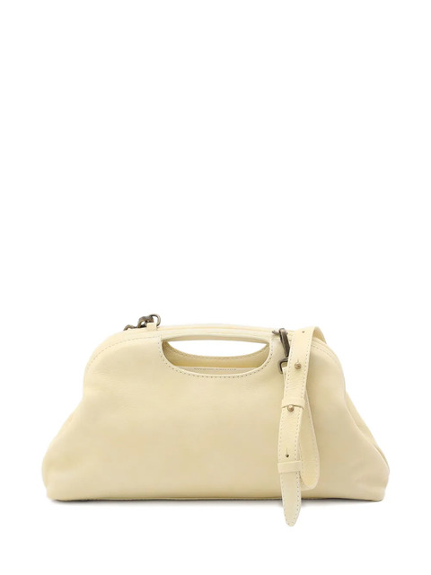 pale yellow leather single top handle clasp fastening detachable shoulder strap curved shape