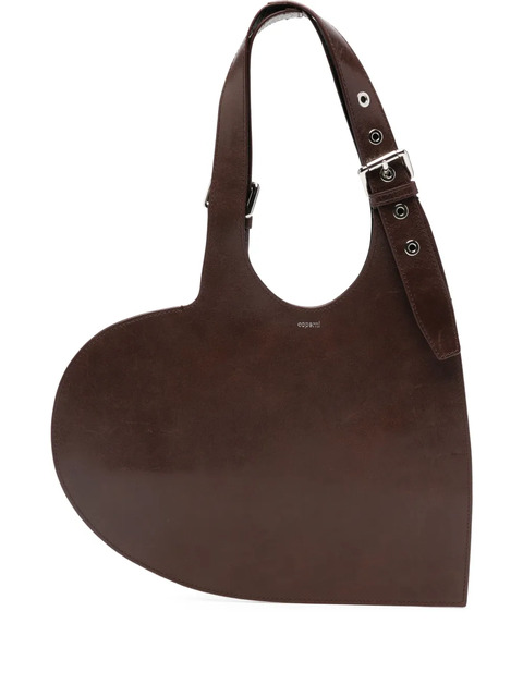 brown leather buckle fastening shoulder strap main compartment heart-shaped