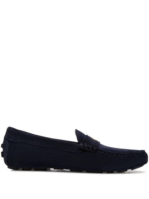 navy blue slip-on style gold-tone logo plaque branded leather insole rubber outsole