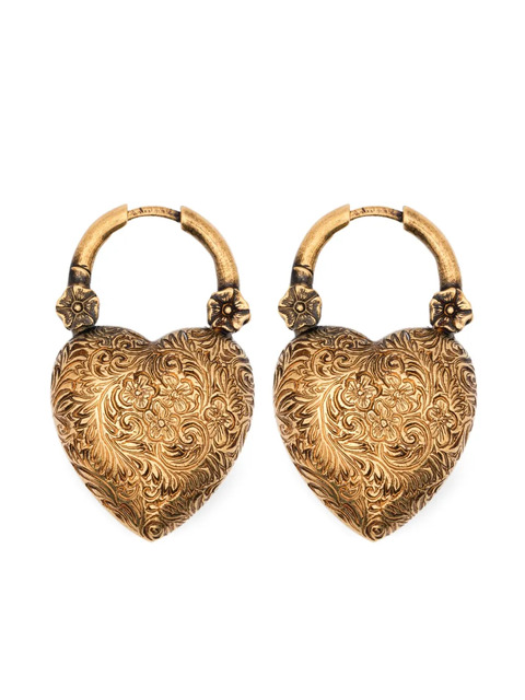 gold-tone heart-shaped padlock motif engraved floral pattern hoop design polished finish These earrings come as a pair.