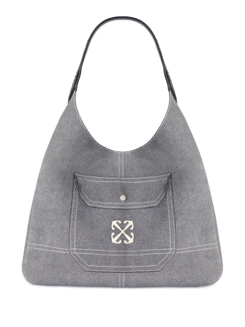 black/white logo-embossed strap single flat top handle magnetic fastening front flap pocket signature Arrows motif main compartment full lining removable pouch