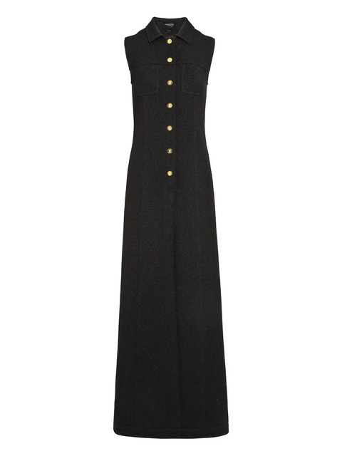 black gold-tone button embellishment classic collar sleeveless straight hem front button fastening