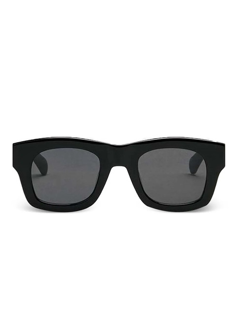 black rectangle frame tinted lenses logo lettering silver-tone detailing These glasses come with a protective case.