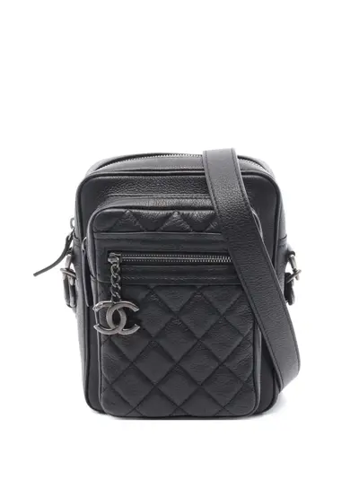 2016-2017 black calf leather diamond quilting silver-tone hardware adjustable strap interlocking CC logo Serial Number: 22486870 This item comes with an original Chanel authenticity card. Condition: EXCELLENT. This previously owned item is in near-perfect condition with no signs of damage or use.