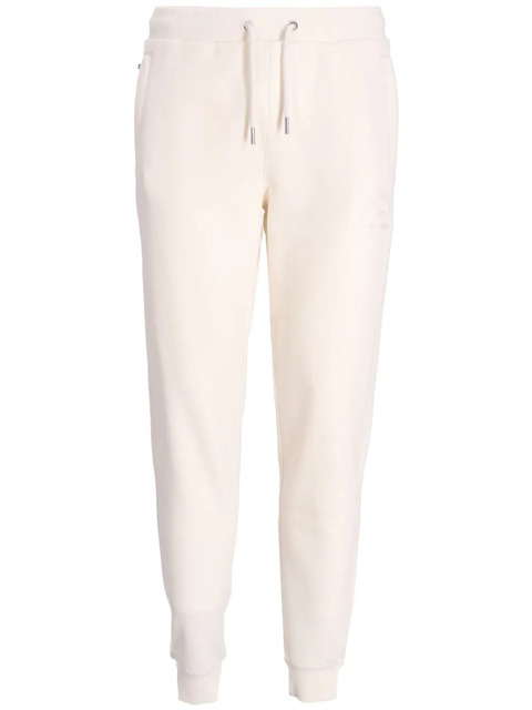 white stretch-cotton jersey texture elasticated drawstring waistband mid-rise two side slit pockets rear patch pocket tapered leg elasticated ankles