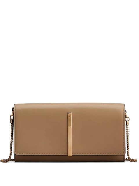 beige leather construction gold-tone bar detail zip fastening chain strap flap closure