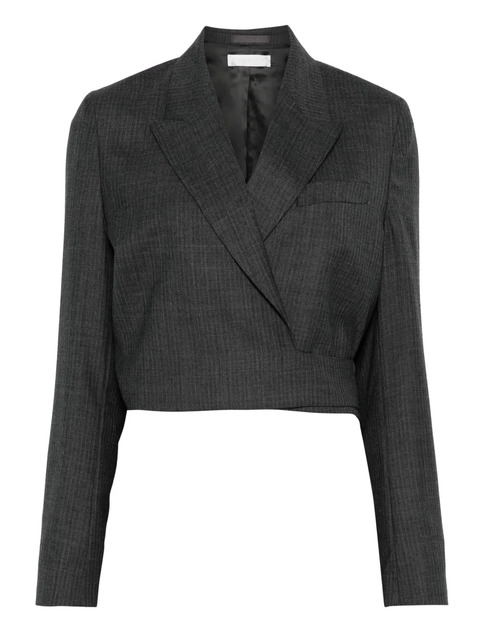 grey herringbone weave notched lapel rear tie fastening long sleeves chest jetted pocket