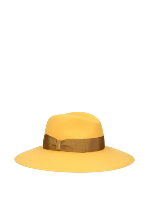 yellow wool felt wide brim grosgrain ribbon bow detail flat crown