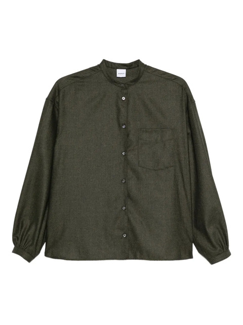 dark green chest pocket button fastening long sleeves band collar gathered detailing