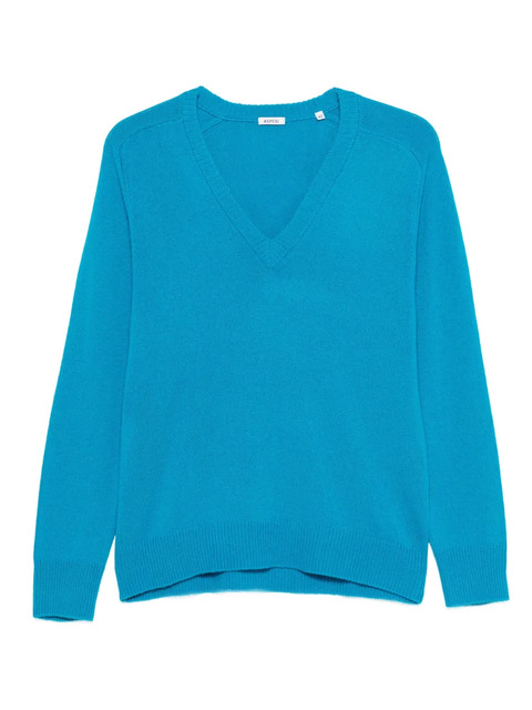 turquoise V-neck ribbed hem ribbed cuffs long sleeves knitted